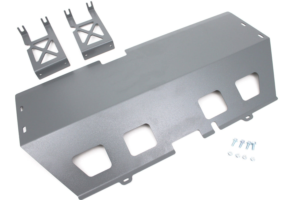 Made out of steel to ensure the highest strength to weight ratio possible and powder coated for corrosion resistance. This skid plate is mounted to your frame rail and front radiator support for maximum rigidity.